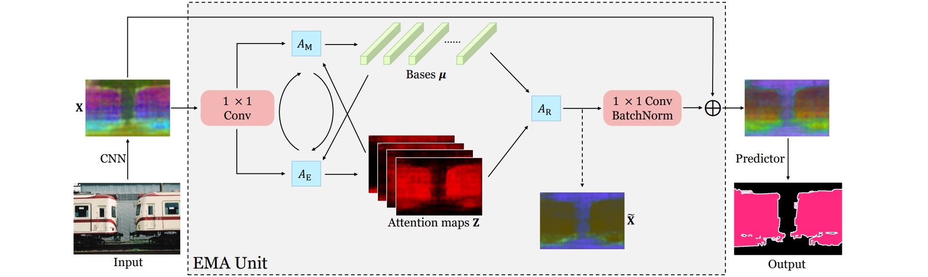 该算法(EMANet)利用期望最大化(EM)计算出一组精炼的基底,在这些基底上执行注意力机制。