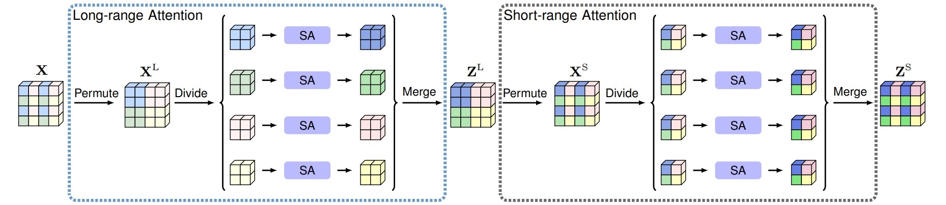 ISANet通过将特征图划分为块来计算块内self attention,从而得到Long-range的attention;同时,ISANet通过计算块之间的self attention来获得Short-range的attention。