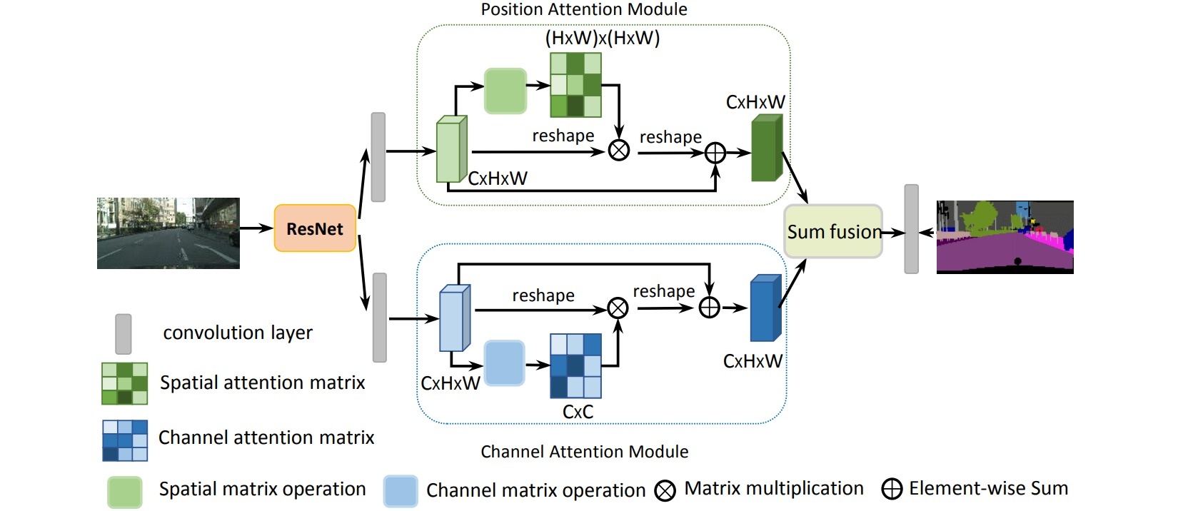 DANet采用了Dual Attention机制,同时引入了沿空间维度以及通道维度的自注意力机制。