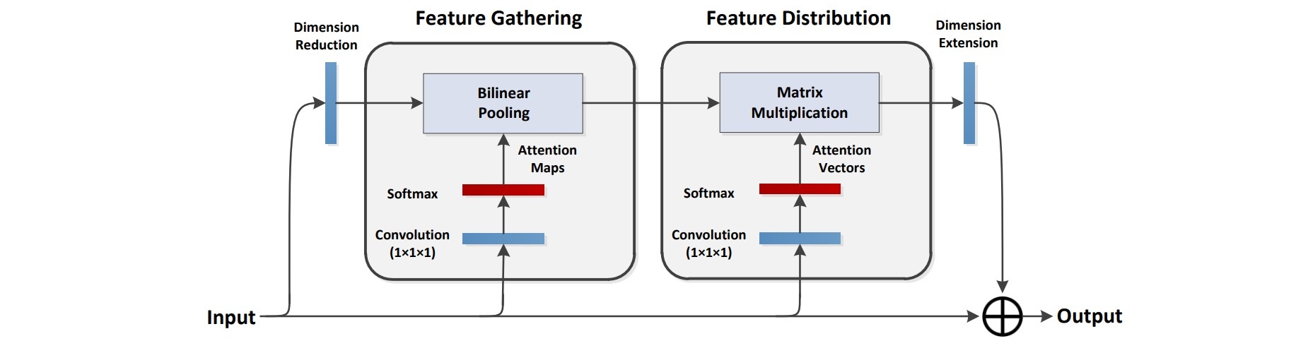 A^2-Net首先通过双线性池化生成一系列描述子,接着通过注意力机制将这些描述子分配至特征的各个位置。