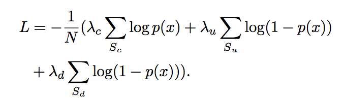 假设模型的输出为p(x),代表用户点击target item的概率,那么不同于一般的二分类损失函数logloss,由于我们用到了三种不同的反馈信息,那么我们的样本不仅仅简单的区分为正样本和负样本,而是对负样本进行进一步的区分,分为显式负反馈的负样本,隐式负反馈的负样本,因此损失函数如下: