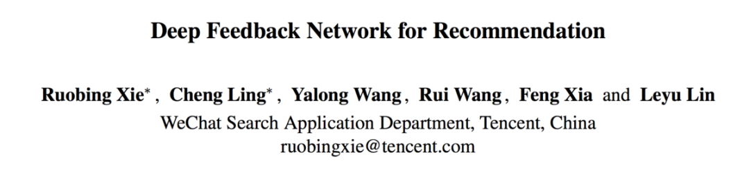 本文分享的论文是微信在IJCAI-20发表的《Deep Feedback Network for Recommendation》