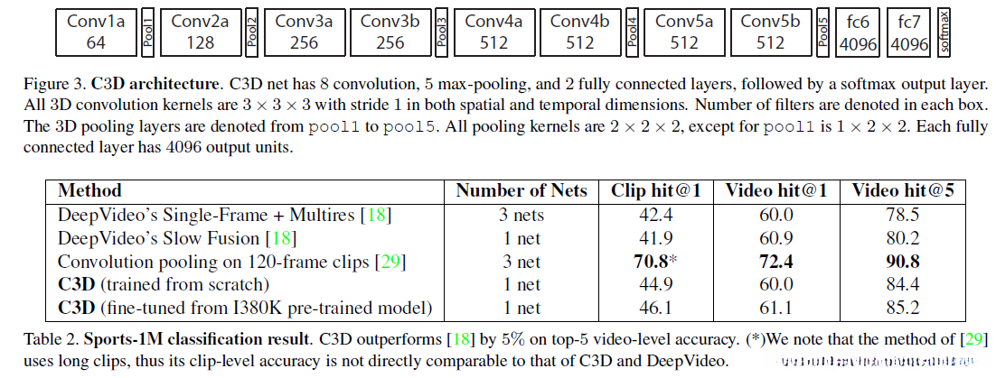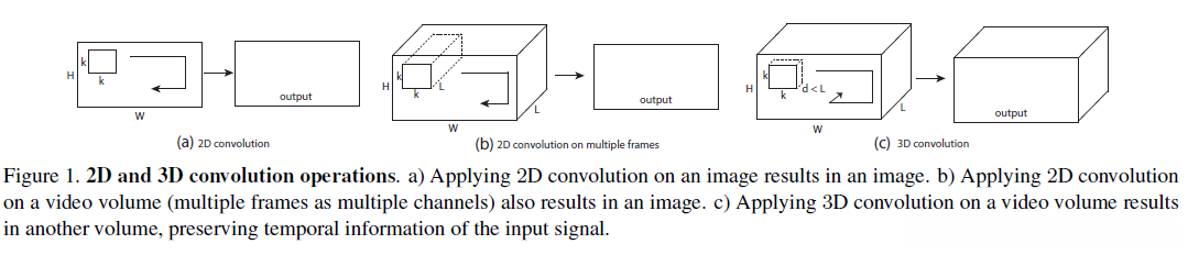 通过三维卷积和三维池化,我们能够对时间信息更好地建模。在3D卷积网络中卷积和池化在时空同时操作而2D卷积中仅仅在空间上。2D卷积丢失了时间信息而3D卷积通过输出一个体积形式保留了时间信息。池化操作同理可得。