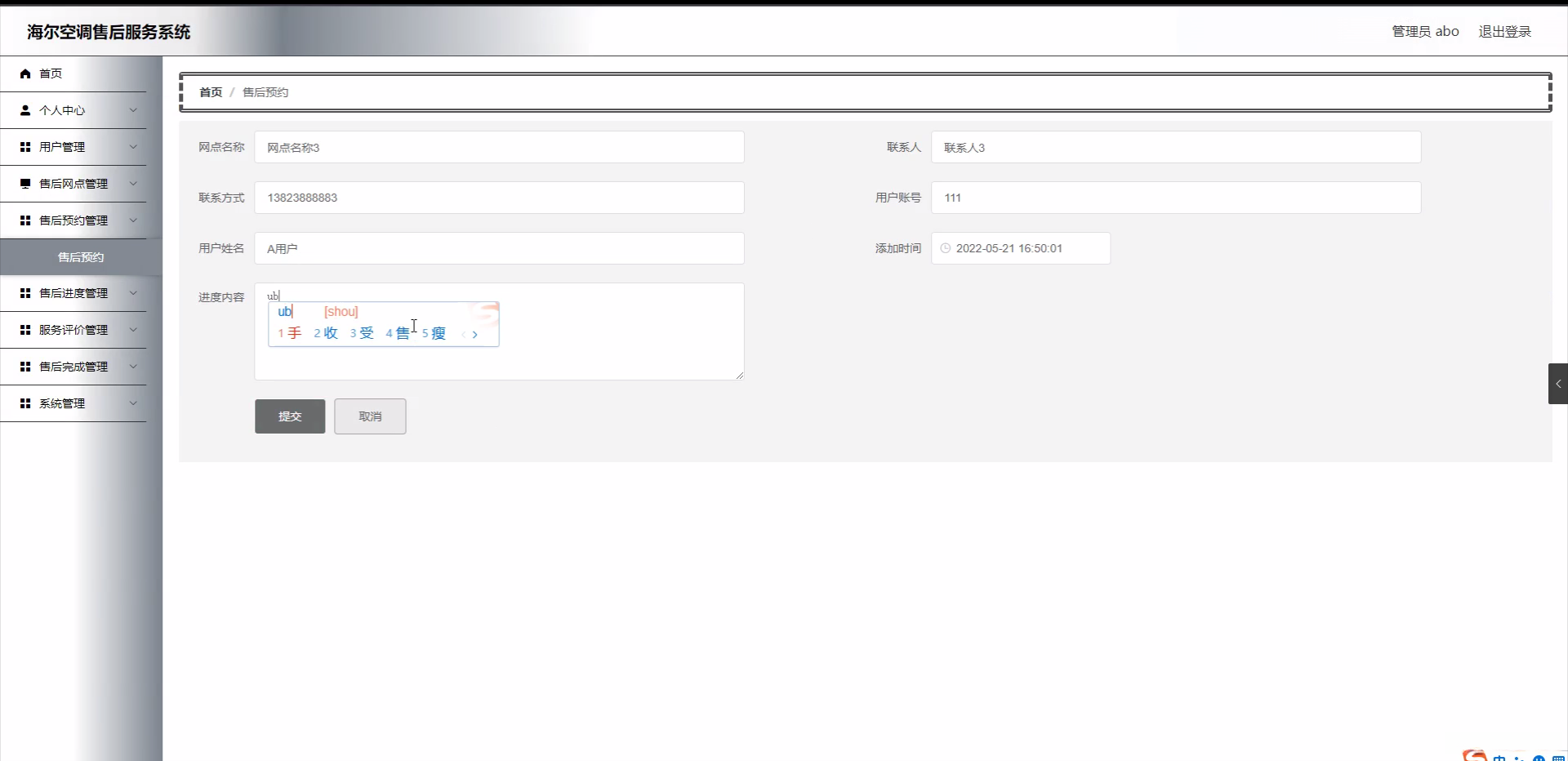 springboot毕设项目海尔空调售后服务系统r300i(java+VUE+Mybatis+Maven+Mysql)