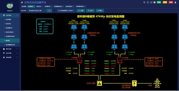 本次开发的智能监控系统采用模块化架构设计,在监控模块方面实现了对光伏电站中各种运行参数的数据采集与传输,并具备故障预警和应急响应功能;同时在感应模块的基础上能够实时采集并传输各类运行数据以供分析;此外该系统还支持对不同电力单元进行独立控制和管理以确保整体系统的稳定性和可靠性