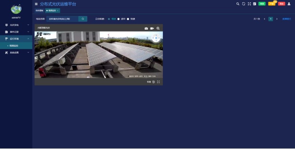 ●视频监控:在光伏电站现场布置了配备了多种功能的视频监控设备。这些设备不仅能够实时持续观察光伏站运行情况,并且对于具备硬件条件的摄像头还额外支持回放功能以及云台自动调节功能。