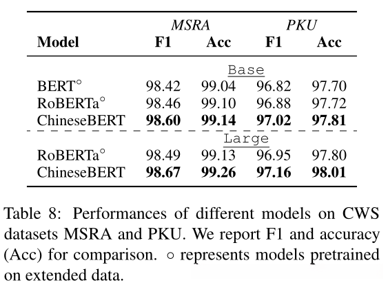 在大规模未标记的中文语料库上进行预处理后,性能有所提升。