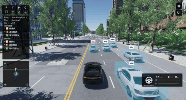 只需启动程序即可体验最新版本的OpenSCENARIO1.0标准场景。以下展示了交叉路口同步到达(Synchronized Arrival at Intersection)的标准场景。
