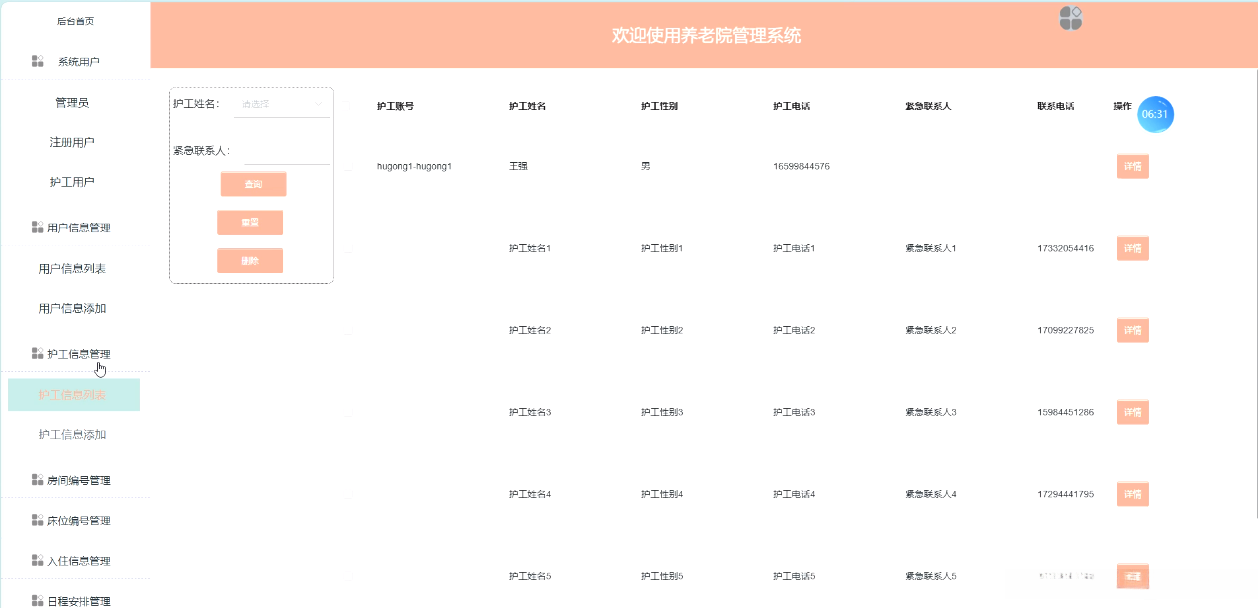 图5-4护工信息管理界面图