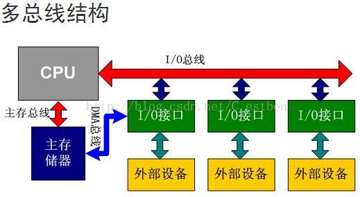 2**)多总线 = 主存总线 + DMA总线(直接访问内存)+ I/O总线 + 地址总线**