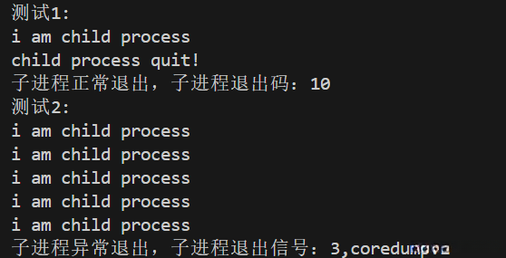 printf("子进程异常退出,子进程退出信号:%d,coredump:%d", status & 0x7F, (status & 0xFF) >> 7);