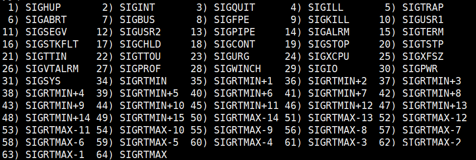 以下是一张信号表,可用kill -l 命令查看:
