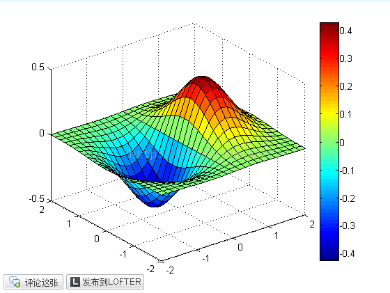 zz=xx.*exp(-xx.2-yy.2); % 计算函数值,zz也是21x21的矩阵