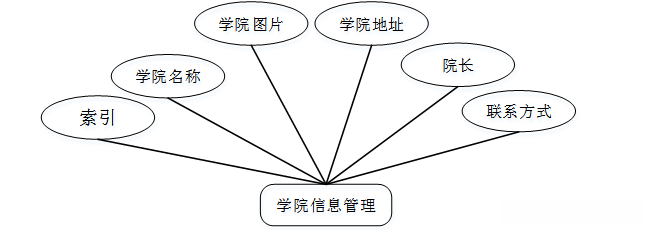 学院信息管理实体涵盖以下属性:标识符(索引),院名(学院名称),图标(学院图片),办公地点(学院地址),负责人(院长),联系信息(联系方式)。如图4-4所示。