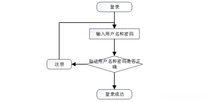 系统登录: 启动计算机系统后,默认调用登录界面。根据指定要求输入用户名、密码以及用户身份信息后,请单击‘登录’按钮进行验证。如果验证成功,则进入相应的功能模块;否则提示用户先完成注册信息。具体操作流程如图5-1所示