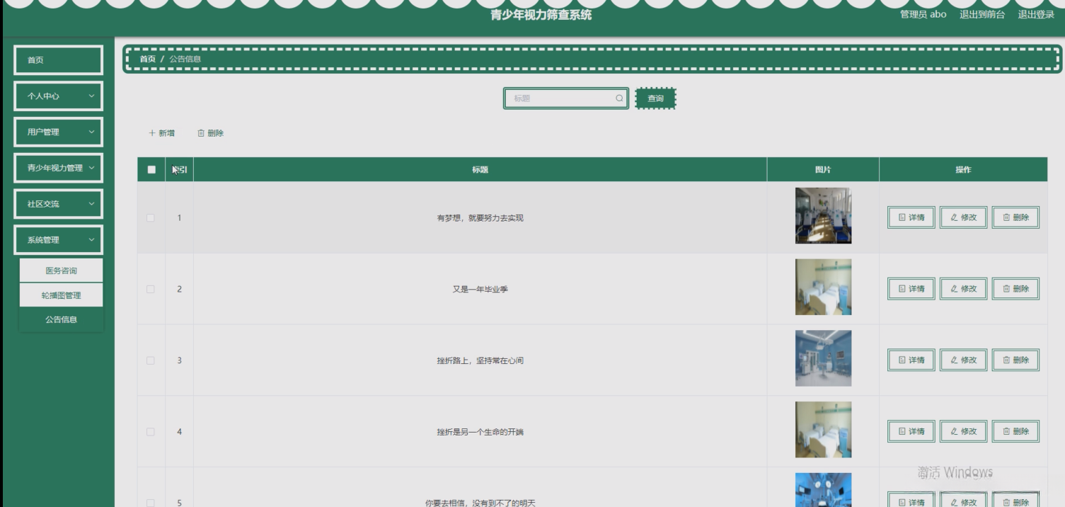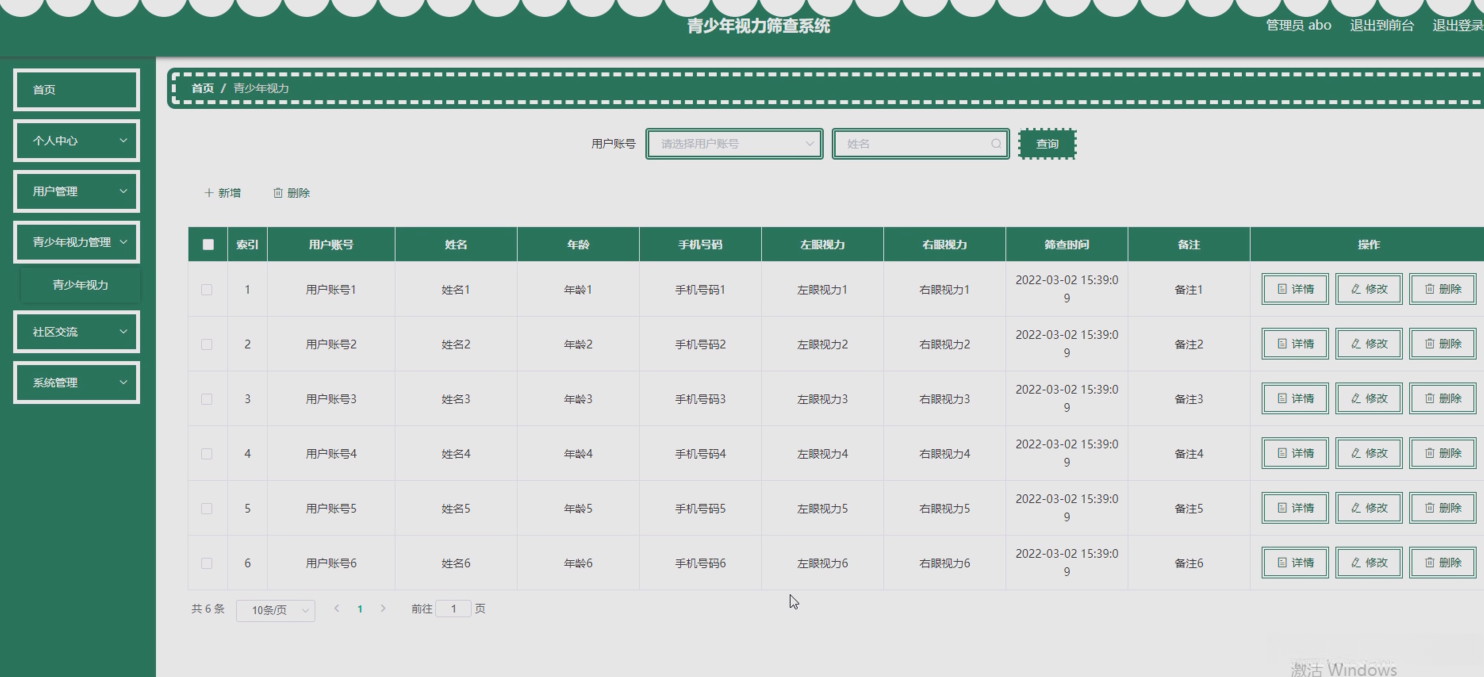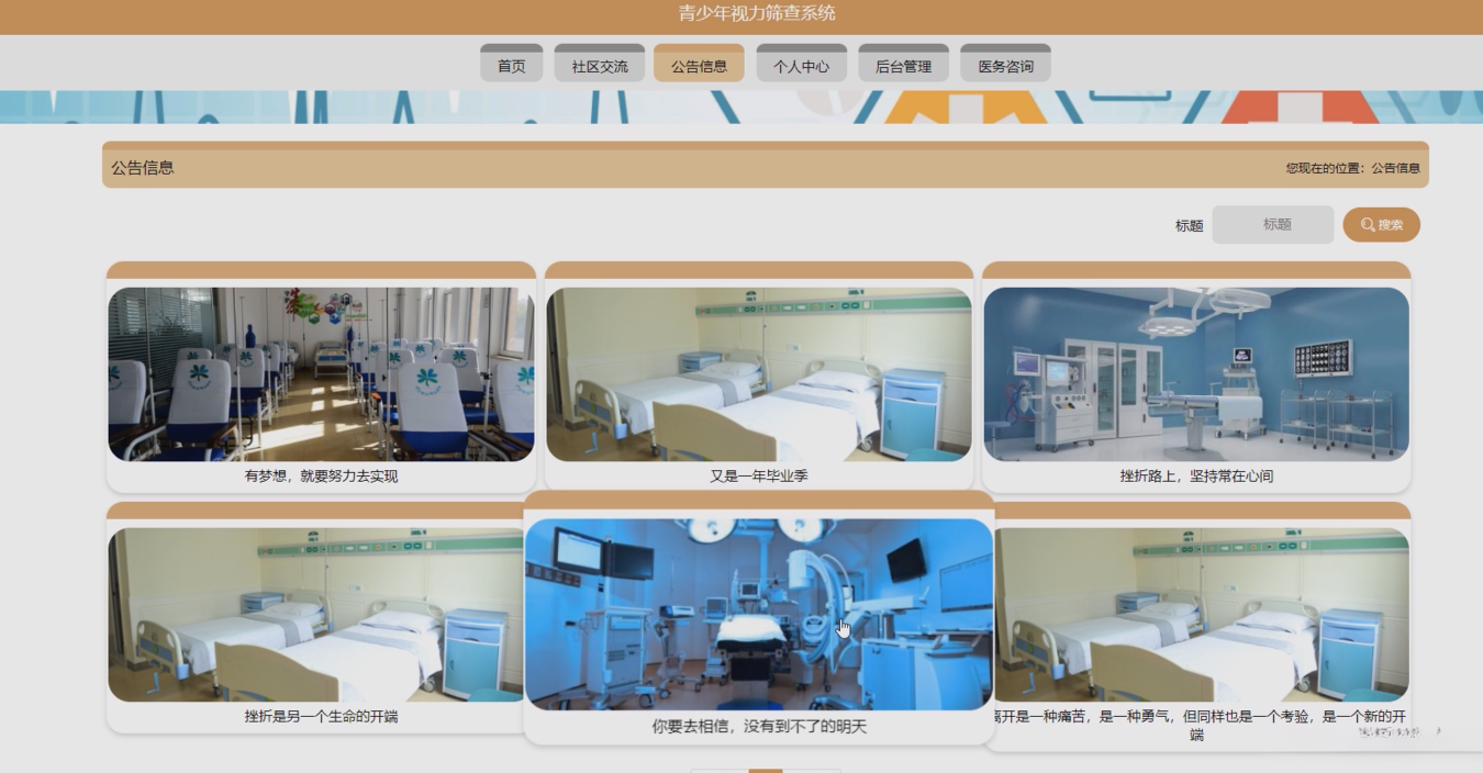 成功设计并实现一套功能完善、操作便捷的青少年视力筛查系统,为青少年视力健康保护提供有力支持。预期成果包括系统程序、源码、数据库、调试部署文档及开发环境等。