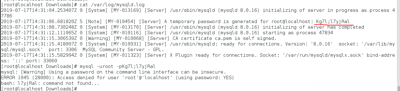 6. 查看初始密码: cat /etc/my.cnf ,里面有个日志文件记录了初始密码