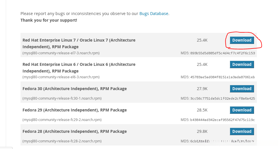 1. 下载开源版本的mysql rpm,下载地址: https://dev.mysql.com/downloads/repo/yum/