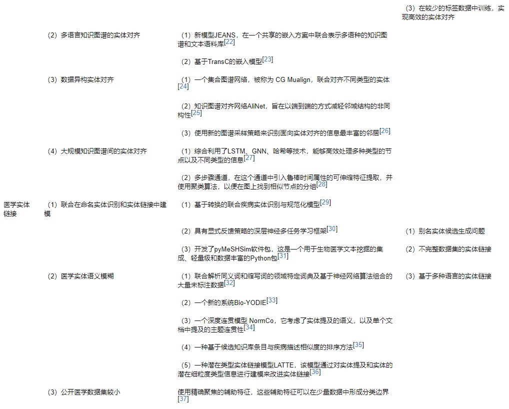 医学知识的表现方式复杂多样,在数据异构的知识图谱之间进行实体对齐也是当前研究的一个难点。