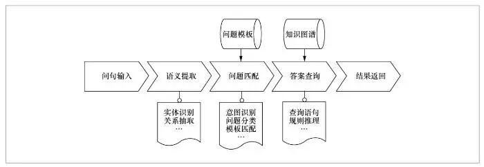检索式方法就是将用户的问句转化为知识库的查询语句,再将查询的结果转化成自然语言返回给用户,其一般流程由语义提取、问题匹配以及答案查询3个部分组成,如图2所示。