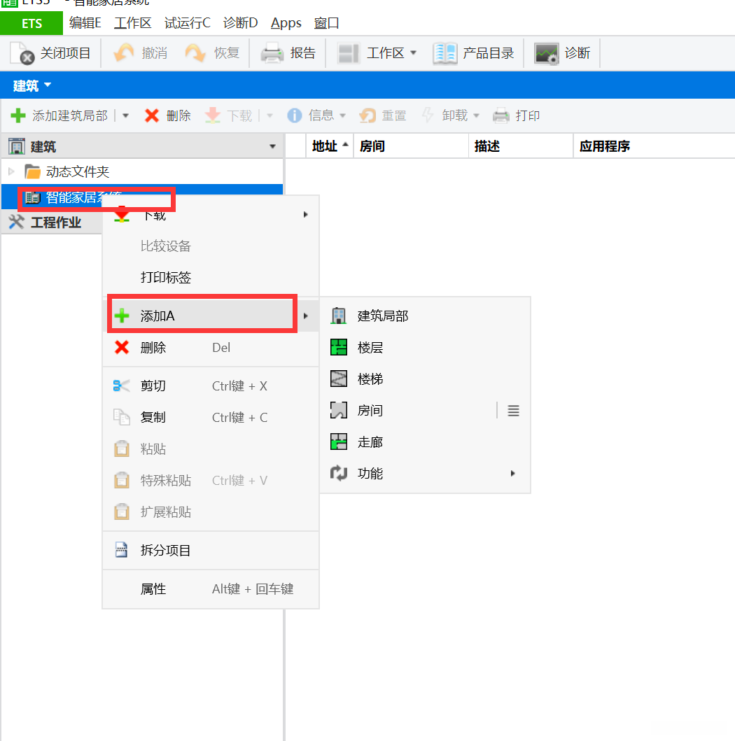 按顺序依次添加建筑局部->楼层->楼梯->房间