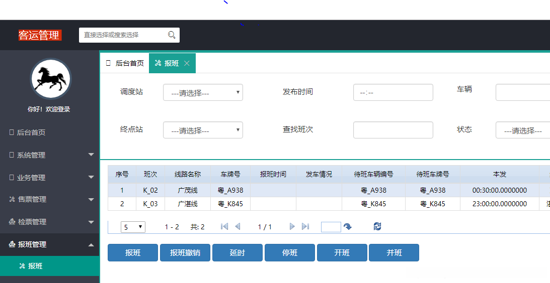 延时、停班、开班:在报班页面里