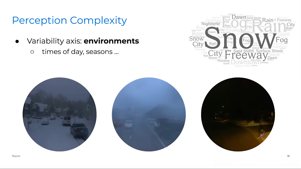感知的复杂性不仅包含多种环境。 例如一天中的白天与黑夜、不同季节的变化以及雨天或雪天等都对识别能力提出了要求。