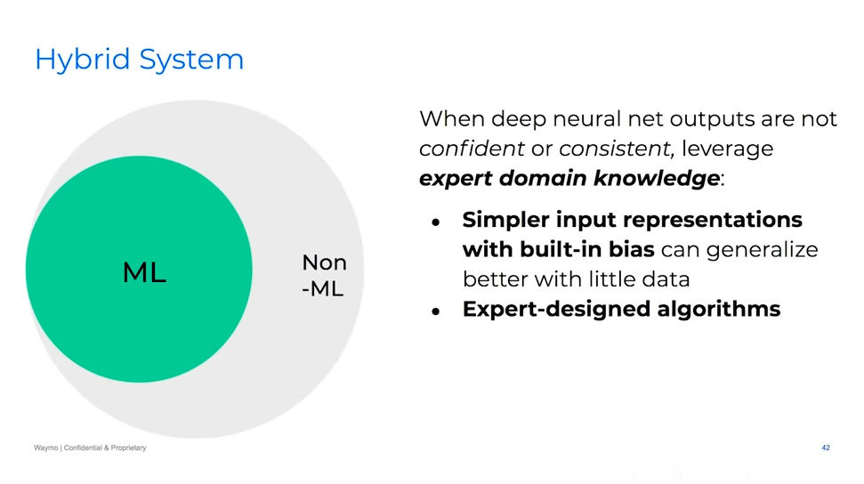混合系统: 这是将传统人工智能与机器学习集成的系统,并且这样的设计能够确保系统的鲁棒性,并为自动驾驶提供安全保障。