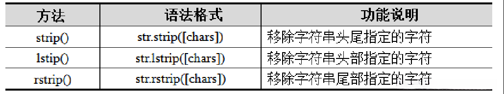 字符串中可能会包含一些无用的字符(如空格),在处理字符串之前往往需要先删除这些无用的字符。Python中的strip()、lstrip()和rstrip()方法可以删除字符串中的指定字符。