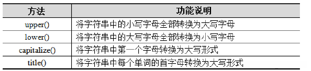 在特定情况下会对英文单词的大小写形式进行要求,表示特殊简称时全字母大写,如CBA;表示月份、周日、节假日时每个单词首字母大写,如Monday。Python中支持字母大小写转换的方法有upper()、lower()、capitalize()和title()。