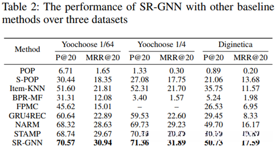 相较于多种基准方法而言,在P@20和MRR@20指标下展现了最佳水平的结果。具体而言,在实验设置中,默认使用Yoochoose 1/64数据集仅包含其会话中最早选取的1/64条记录;而Yoochoose 1/4则仅采用会话中最靠近当前时间戳的1/4条记录作为训练数据。研究结果表明,在这两种不同的策略下,该模型通过在两种不同的策略下展现出了更有效的特征提取能力。