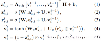 SR-GNN中的向量表示模块主要基于GGNN实现。该模块其训练机制与前述方法一致,在数据输入方面则采用了作者自创的构造方法进行处理。