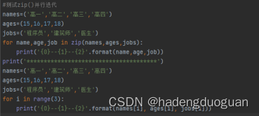 借助zip()函数对多个序列实现同步遍历,在某一个序列耗尽其全部元素时该操作会终止: