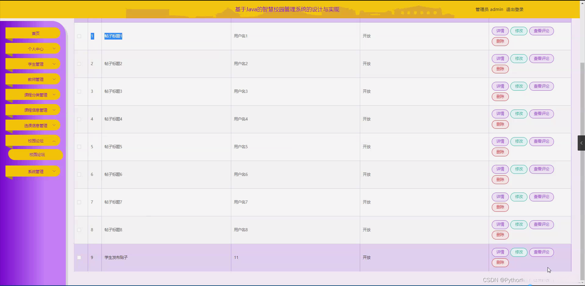 python计算机毕设【附源码】智慧校园管理系统的设计与实现(django+mysql+论文)