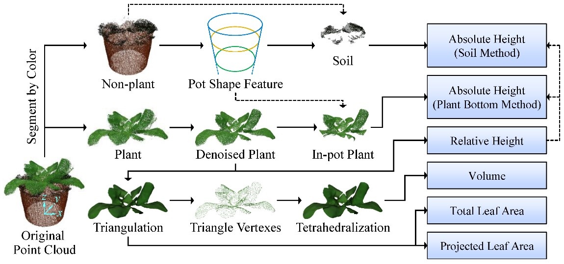 植物表型指受基因和环境因素决定或影响并反映植物结构等的特征,通常能够很好地反应基因、环境对植物的影响。通过分析表型等,能够很好地指导农学专家将数据与已知遗传数据对比,将基因型和表型进行关联分析,达到高级遗传育种的目的。