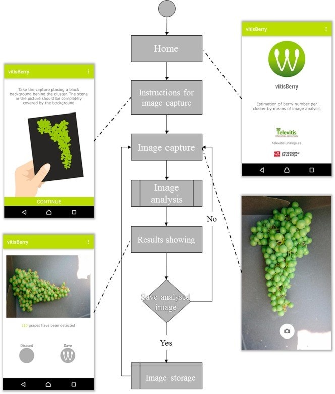 传统的检测设备体积过大或者过于复杂,农学专家操作复杂的检测设备较为困难,考虑到移动便携设备如智能手机在计算、摄像等方面具有很高的性能,Aquino A等人开发了一个基于安卓智能手机的应用程序vitisBerry用于估计葡萄粒数[16]。该应用程序通过手机自带摄像头获取葡萄图像,并对该图像进行处理和分析以估计葡萄粒数。