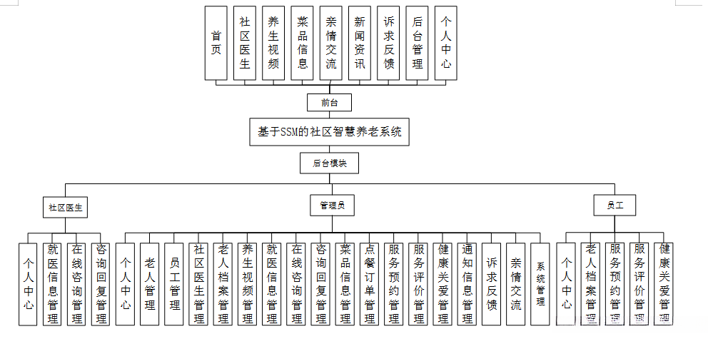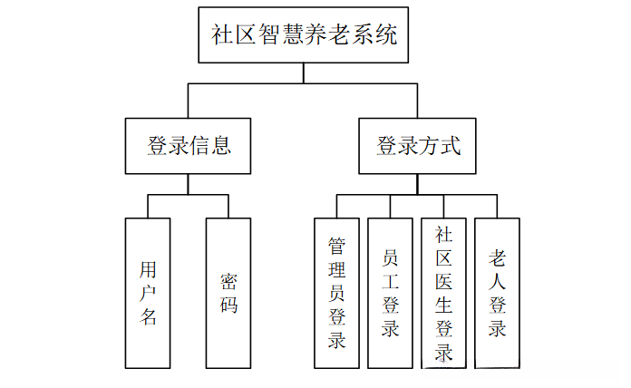 管理员模块属于网站后台管理的核心部分,在进入后台后提供了丰富的功能选项。此外,在实际操作中,管理员同样能够利用系统用户模块提供的各项功能以完成日常维护任务。在优化网页布局时,在经过详细设计后采用系统管理工具对页面进行调整以确保其稳定性和美观性。需要注意的是,在完成所有设置后,请参考附图4-2以了解社区智慧养老的整体架构。
