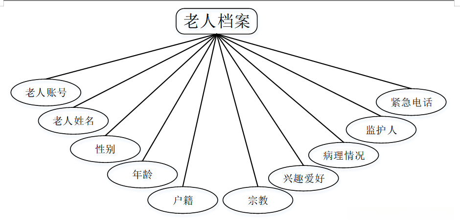 研究社区智慧养老系统的数据架构后,在ER图中考察管理员登录过程中的模式特征,则需录入用户名及密码信息,并可观察到如图4-4所示的管理员信息实体属性配置。