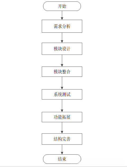 系统的开发流程设计对开发过程进行了概述,在深入分析了任务书的基础上,在明确的功能需求下对各个功能模块进行了详细开发;随后对每个模块逐一进行了测试;在所有单个模块测试通过后完成了各模块的整合,并再次完成了整体系统的功能性测试;最终在系统结构上实现了完整性与完善性[6]。