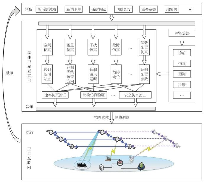 近年来,ITU、3GPP、Sat5G等国际通信组织致力于卫星互联网的标准化工作,同时明确了应用场景并进行了验证测试[11,12,13]。学界的研究者们也对卫星互联网的架构、标准体系、关键技术以及运维管理等方面进行了深入探讨和研究[14-15]。卫星互联网由数千颗卫星、全球分布的地面站以及海量终端共同构成,其网络运行面临着由全域状态反馈引发的“数据洪流”,高动态的运动特点导致网络拓扑的实时变化[5],用户与业务分布不均匀产生的“潮汐效应”[2],复杂电磁环境造成的时变干扰,以及频轨资源使用规则带来的约束问题均较为突出。面对日益增长的需求,网络负载持续上升,规模不断扩大,由此导致的网络复杂性显著增加,使得运行维护和优化工作愈发繁重[15]。此外,由于网络运营的高可靠性要求,网络故障的高代价、试验成本高昂以及网络的快速变更特性,新技术的引入和部署均面临诸多挑战。这些复杂问题对卫星互联网的设计论证、建设部署以及运维优化均提出了严峻考验。