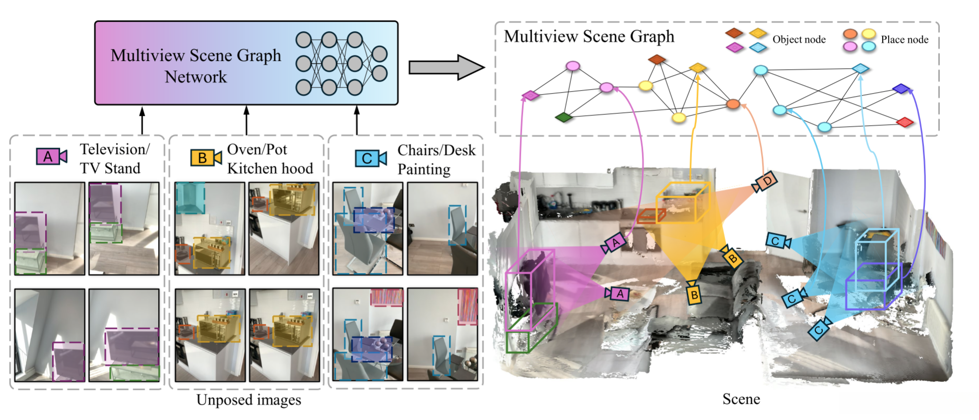 ,我们将多视图场景图表示为场所对象图 :