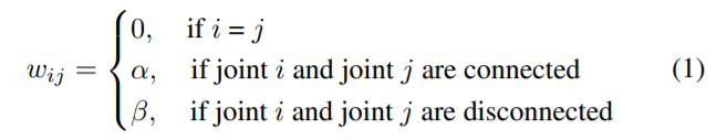 在这里, 我们通过赋值wii = 0来舍弃每个关节的自连接关系. 进一步说明的是, 在分析关节之间相互作用时,默认将它们划分为两种类型: 一种是基于加权矩阵W的内在依赖关系(由加权矩阵W描述), 另一种是外在依赖关系.