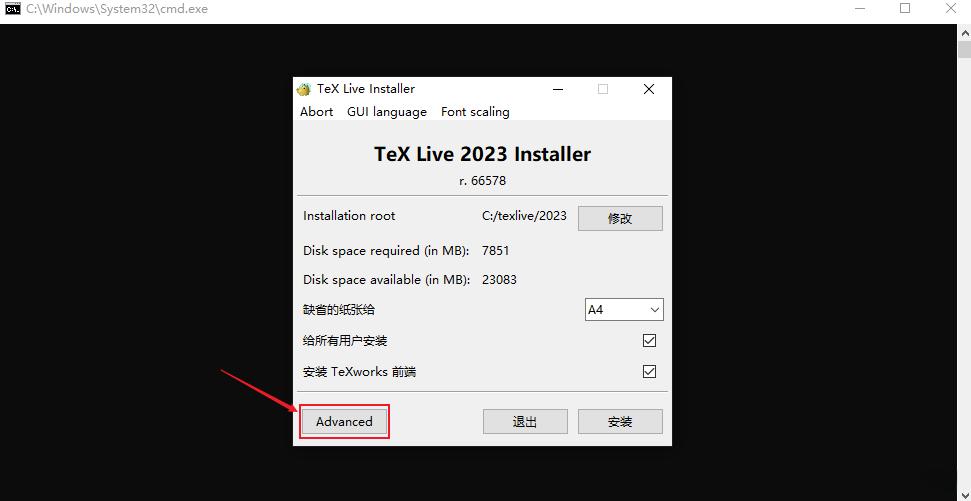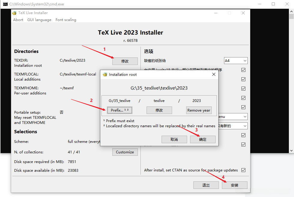 选择安装位置(TEXDIR),其他保持默认 ---> 点击安装