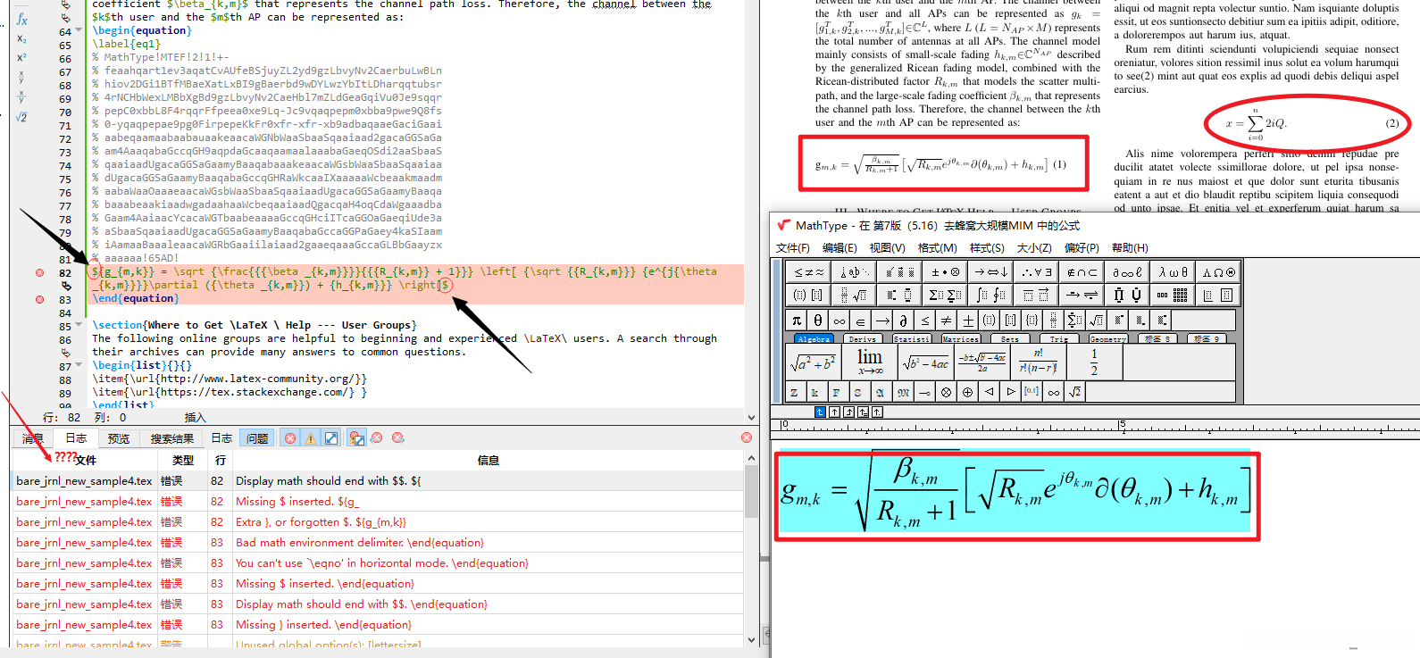 疑惑:文中可以正常显示公式,但是报错,且编号不靠右,如下图红色箭头所示。