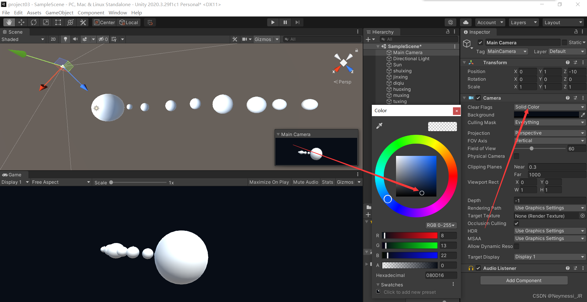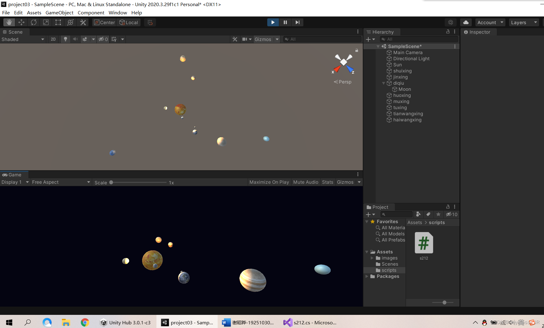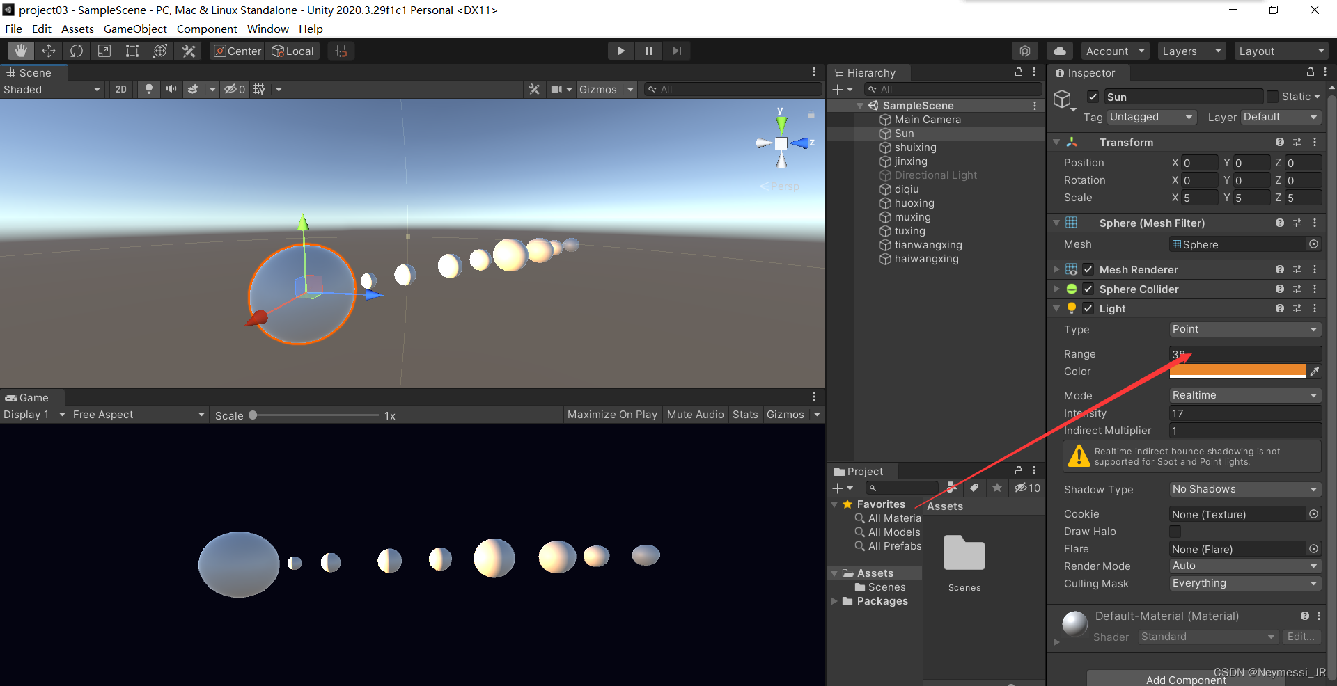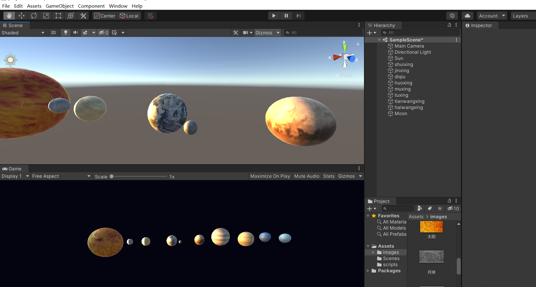 3、创建剩余的几个星体,并拖动位置并调整大小到合适值,更改每一个星体的名称: