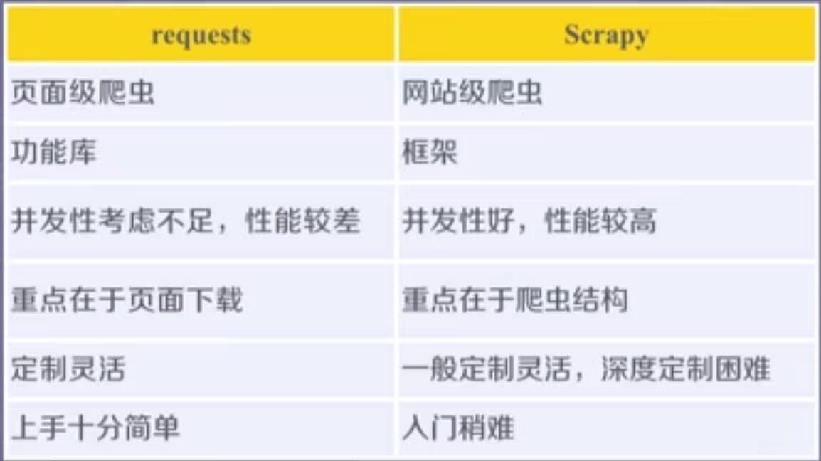 不同点:爬取某个网页使用requests,爬取大量网页使用scrapy。