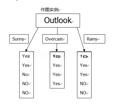 基于Outlook的属性体系存在三个核心要素;因此对应设置了三条分枝路线。从图表中可以看出,在分枝节点sunny处,“否”状态呈现出三次出现的情况,“是”的情况则出现了两次。