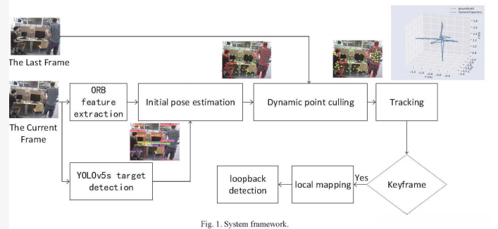 采用更轻量级的YOLOv5s目标检测网络作为独立运行的核心单元,并将其集成到基于ORB-SLAM2的定位算法中以开发一个具有实时定位能力的动态SLAM系统