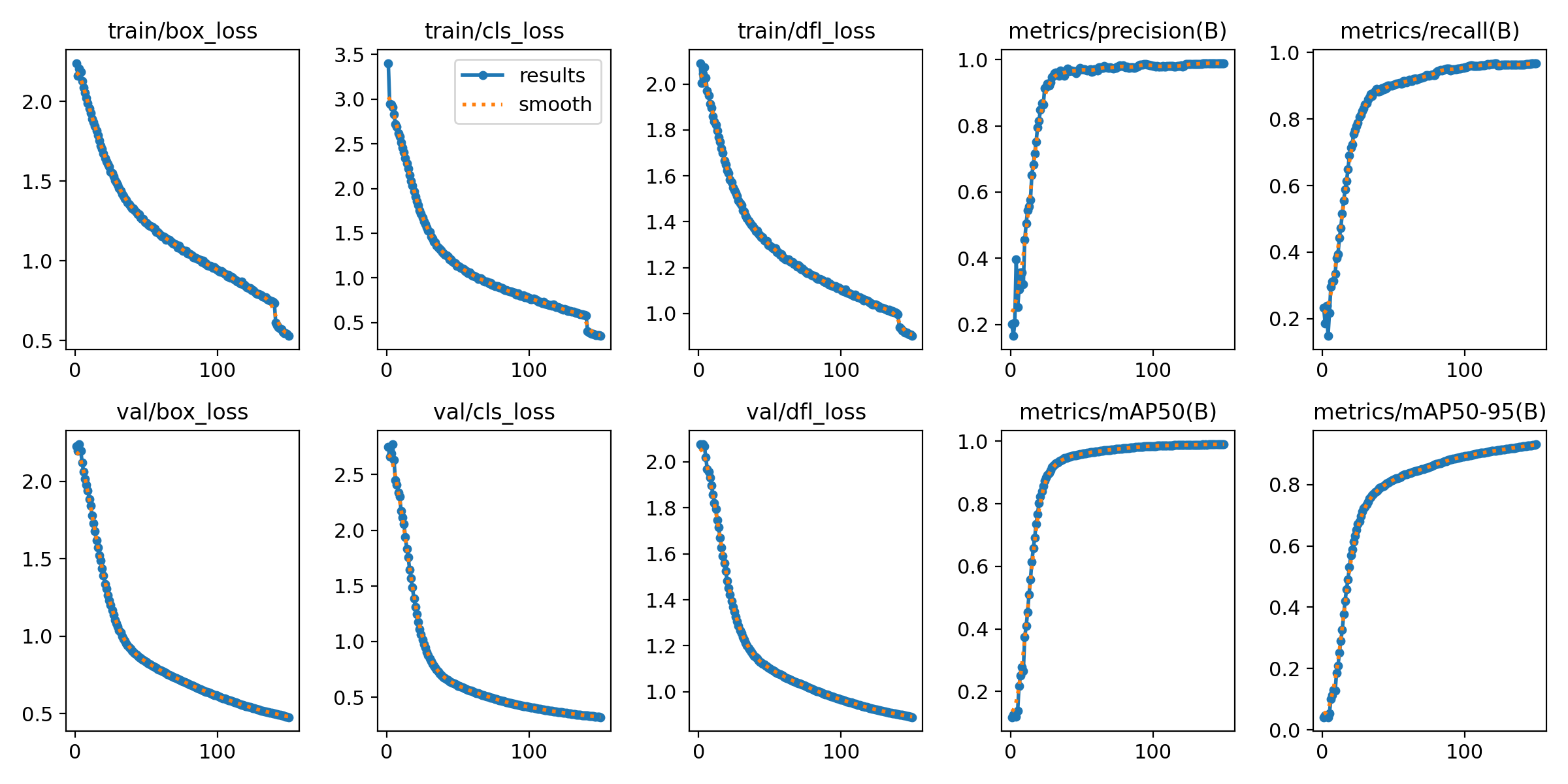 分析了训练与验证阶段中的损失曲线演变及其对应的评估指标(包括box_loss、cls_loss等具体指标以及mAP等关键参数)。该方法能够有效识别模型在训练过程中可能出现的收敛性问题以及过拟合或欠拟合的情况。