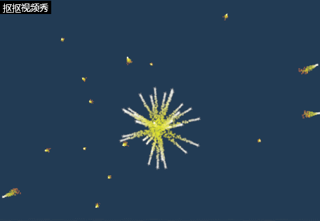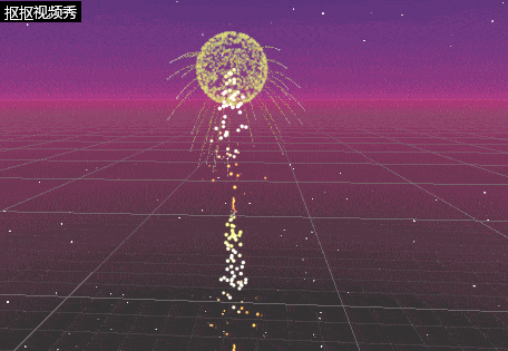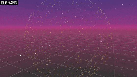 从这段动画演示中观察到,在这一系列的变化过程中, 粒子从较小规模开始逐渐扩大, 接着突然缩小, 并在此过程中呈现出轻微的旋转运动. 这一变化现象被我们观察到, 并由此启发了我们对粒子系统设计的重要思考.
